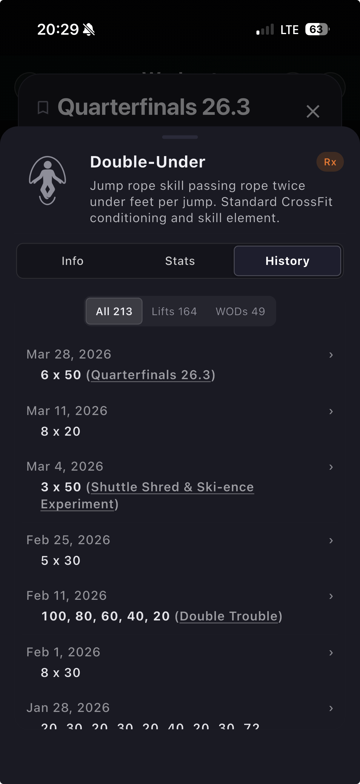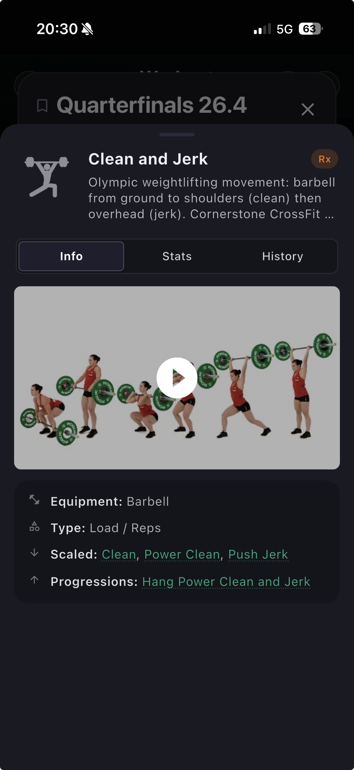 - Embedded demo videos — watch classic CrossFit movement demos directly in the Info tab.